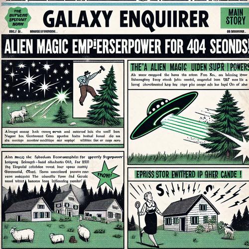 Warum das kosmische Hochschalten in die Superwelt nur exakt 404 Sekunden anhielt, bleibt ein Rätsel. Experten, oder solche, die es sein könnten, munkeln, dass es sich um einen interstellaren Streich handelte – oder gar um ein schiefgelaufenes Alien-Sportevent! Vielleicht wollten uns die grünen Gnome aus dem All einfach einen Wohltätigkeitskick verleihen, ein galaktischer Spaß, bevor die Eingangstür zu irdischen Normen wieder ins Schloss fiel.