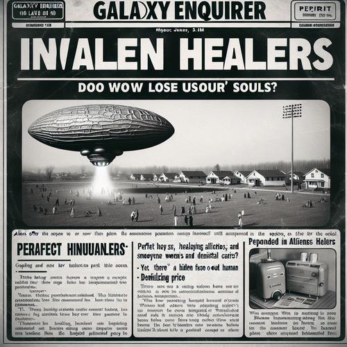 Unsere rasenden Reporter*innen der Galaxy Enquirer waren direkt vor Ort, um über die Ereignisse zu berichten. Alien-Entführungen? Fehlanzeige! Doch was die Außerirdischen anboten, war nicht weniger schockierend: die perfekte Gesundheit für alle Menschen, aber zu welchem Preis? Diese sogenannten "Heiler" boten an, Gebrechen zu heilen und sogar die verhassten Falten der älteren Damen zu glätten – ganz zu schweigen von der sofortigen Heilung aller Zipperlein.