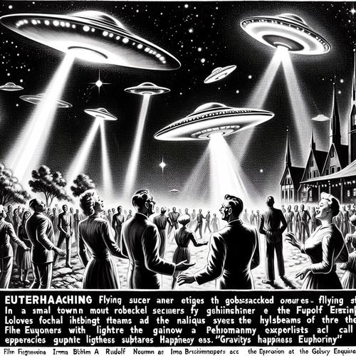 Die Schilderungen der wagemutigen Irma wurden von weiteren hysterischen Berichten unterstützt. Rudolf Neumann, bekannt für seine lebhaften Erzählungen im Galaxy Enquirer-Stammtisch, wirkte diesmal ernster als sonst. "Die Untertassen hatten Lichter in allen Farben des Regenbogens. Für einen Moment fragte ich mich, ob sich außerirdische Discokugeln verlaufen haben," bemerkte er schelmisch, während er versuchte, seinem Schnurrbart ein rebellisches Zucken auszureden.