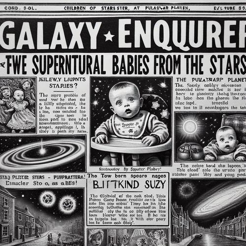 Seit Generationen gilt Blitzend-Nova als stummer Wächter des Himmels über Starlington. Doch nun scheinen die Sterne zu flüstern und den Nachmittagstee der Hausfrauen zu würzen. „Ich schwöre, mein kleiner Timmy hat gestern die Tischlampe nur mit einem Zwinkern angeknipst!“, verrät die aufgeregte Mutter Betty Sparkle dem Galaxy Enquirer und zeigt dabei stolz auf ihren strahlenden Sprössling. Der Kleine sitzt in seinem Hochstuhl und scheint alles andere als unschuldig, während seine blauen Augen blitzend in die Kamera funkeln.