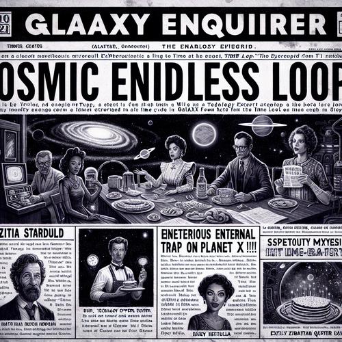 Während die tapferen Pioniere von Planet X weiter nach einer Lösung suchen, bleibt das Team des Galaxy Enquirer fest entschlossen, über jedes spannende Detail der kosmischen Endlosschleife zu berichten. Wird sich das Rätsel um die unheimliche Zeitschleife bald lüften, oder sind unsere galaktischen Helden für immer in der Zeit gefangen? Eine Geschichte, die selbst die geheimnisvollen Men in Black in Atem hält!
