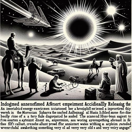 Marokkanische Wüste – Ein idyllischer Nachmittag in der Sahara wurde am vergangenen Mittwoch in ein Szenario verwandelt, wie es selbst Stephen Spielbergs kühnste Träume nicht hätten voraussagen können. Wissenschaftler am geheimen Wüstenprojekt "Energie für Alle" behaupten, dass sie versehentlich ein Wurmloch geöffnet haben, das ein uraltes Bewusstsein in unsere Welt entlassen hat — und es ist auf der Suche nach Antworten!